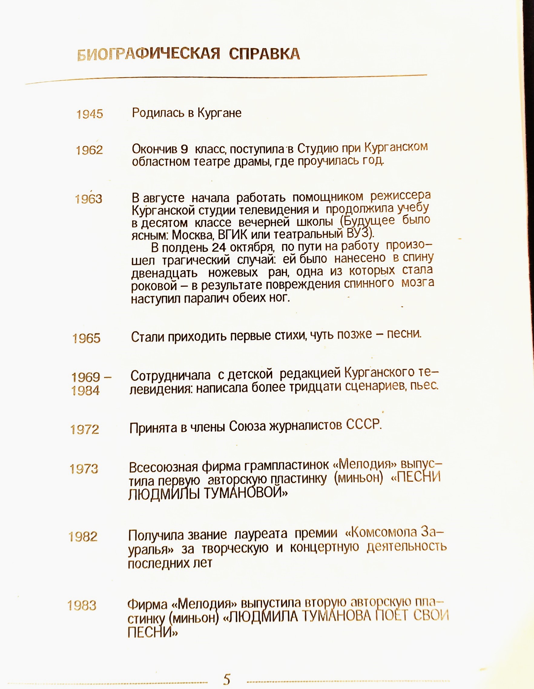 Присутствующие познакомились с трагической и сложной судьбой Людмилы Анатольевны. Увидели фотографии, книги, грампластинки, награды и личные вещи поэтессы, которые являются частью фондов Курганского областного музейного объединения, библиотечной информационной системы, а некоторые предоставлены из личных архивов друзей.